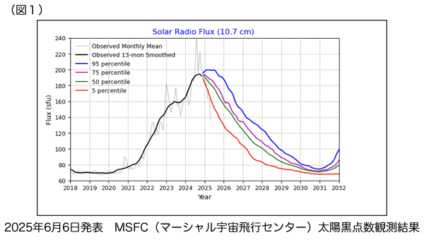 この二・三年の地球全体の高温には、もちろん地球温暖化の影響もあるのですが、それ以外の短期的な影響がありました。はっきりした2つの原因の一つは太陽活動の影響です。ここ数年は太陽活動の活発な、黒点の多い時期でした。(図1)